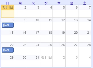 【2018年7月予定表】